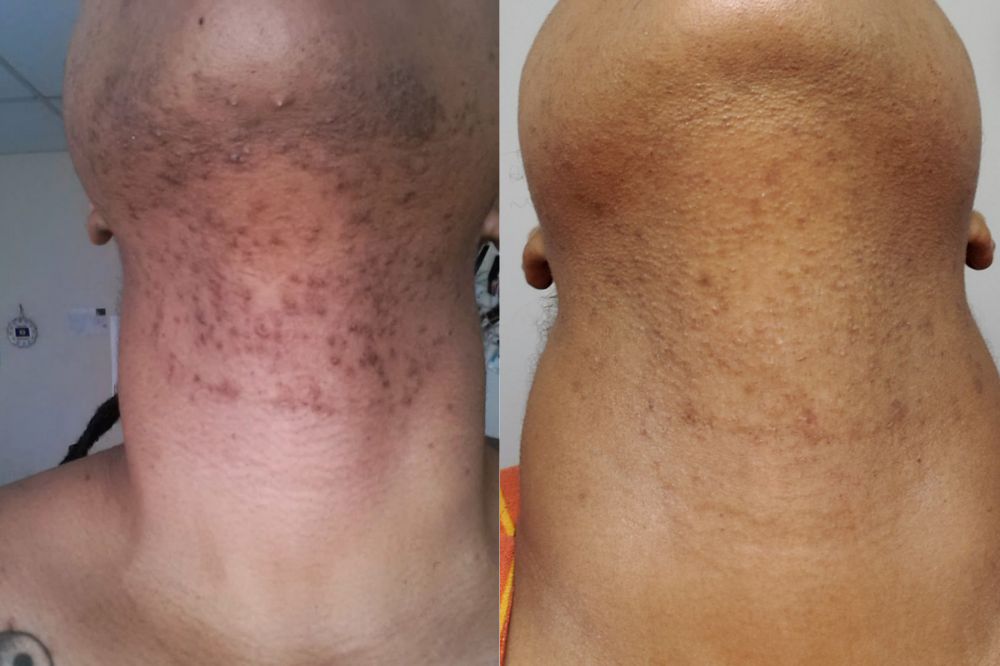 Les brûlures constantes du rasoir et les poils incarnés ont gâché mon menton. L'irritation s'aggravait. Six semaines avec Cypera et les poils sont à peines visibles, mais ma peau est finalement guéri.